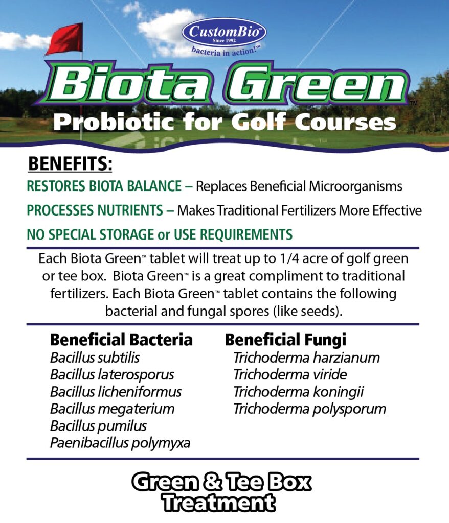 바이오타그린(BIOTA GREEN)은 골프장 그린을 위해 특별히 만들어진 독특한 자연 토양 프로바이오틱스입니다. 바이오타그린(BIOTA GREEN)은 건강한 골프 그린에서 발견되는 유익한 박테리아와 유익한 곰팡이를 함유하고 있습니다.